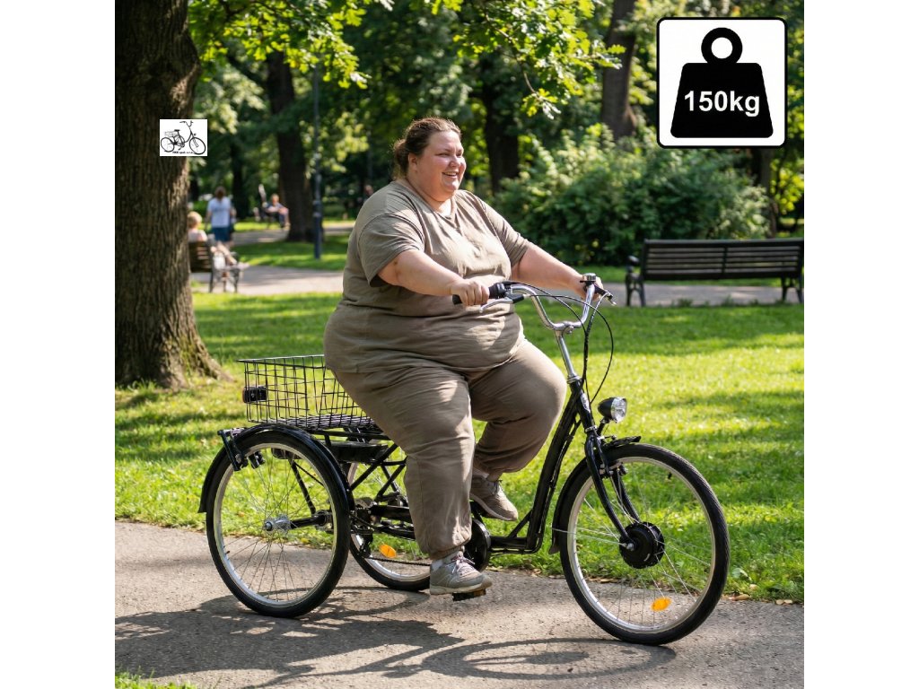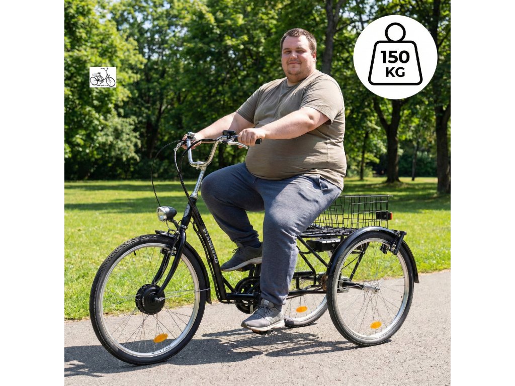 Objevte komfort a stabilitu s tříkolkou e-STANDARD 24", která je kompletně vyrobena v České republice. Tento model jsme navrhli pro všechny, kdo hledají bezpečnou a pohodlnou jízdu, speciálně však pro seniory, děti a osoby se zhoršenou pohyblivostí či poruchami rovnováhy